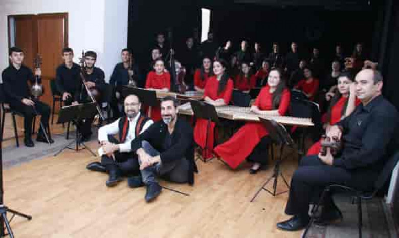 Երիտասարդ երաժիշտներն Արտեմ Խաչատուրի գեղարվեստական ղեկավարմամբ 2016 թվականին, որպես նվիրում Սերժ Թանկյանին և SOAD խմբի անդամներին, ներկայացրել էին վերջիններիս “Aerials” երգի մեկնաբանությունը ժողովրդական նվագարաններով, որը մեծ հետաքրքրություն էր առաջացրել և շնորհիվ դրա՝ ռոք երաժիշտը, այցելելով Հայաստան դեռևս 2017 թվականի մարտ ամսին, չէր մերժել «Նարեկացի» արվեստի միության հիմնադիր Նարեկ Հարությունյանի հրավերը և եկել էր՝ լսելու նրանց: