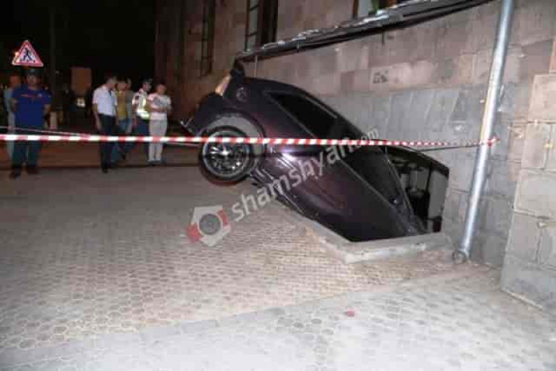 Տերյան փողոցում մեքենան ընկել է Ազգային գրադարանի նկուղը