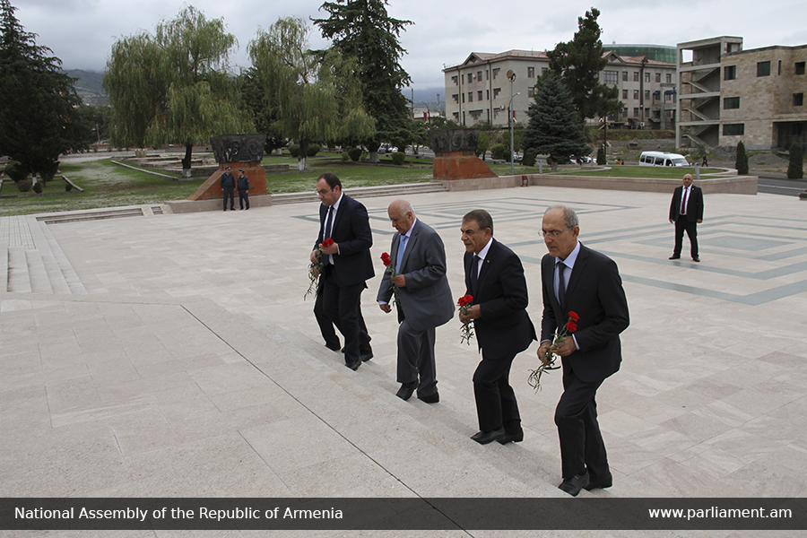Խորհրդարանում տեղի ունեցած հանդիպումից հետո ՀՀ ԱԺ նախագահը ԱՀ ԱԺ նախագահի տեղակալ Վահրամ Բալայանի ուղեկցությամբ այցելել է Ստեփանակերտի հուշահամալիր և ծաղիկներ խոնարհել Արցախյան ազատագրական պայքարի զոհերի հիշատակին: