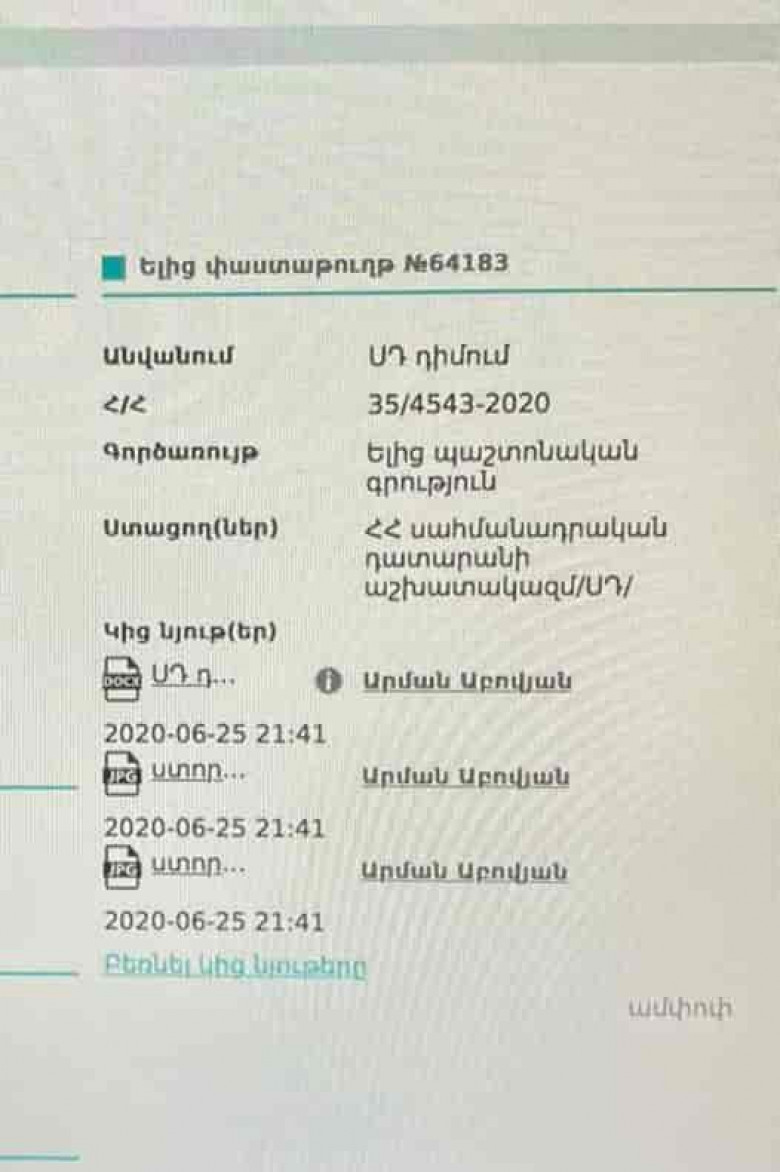 Արման Աբովյանի տեղեկությունը Սահմանադրական դատարանին ուղղված դիմումի վերաբերյալ