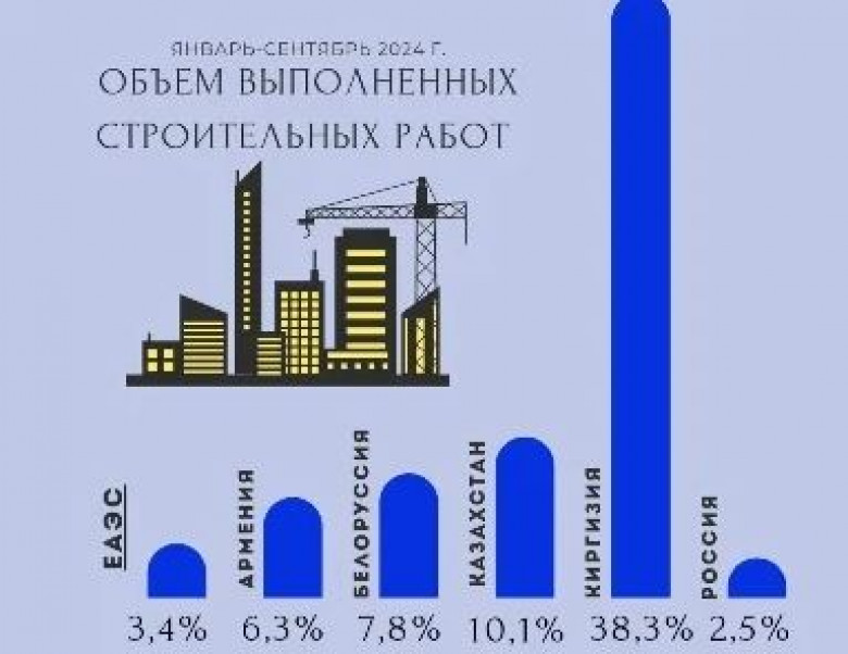 ОбществоОбъем строительных работ в ЕАЭС увеличился на 3,4% в январе-сентябре 2024 года по сравнению с аналогичным периодом предыдущего года