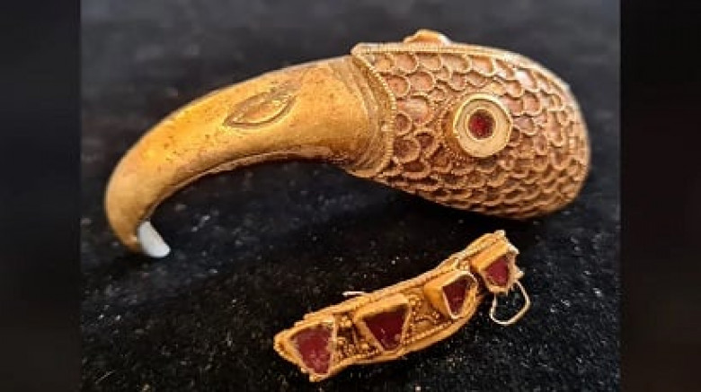 Искатели сокровищ обнаружили в Англии 1400-летнее золотое украшение с рубинами в форме вороньей головы