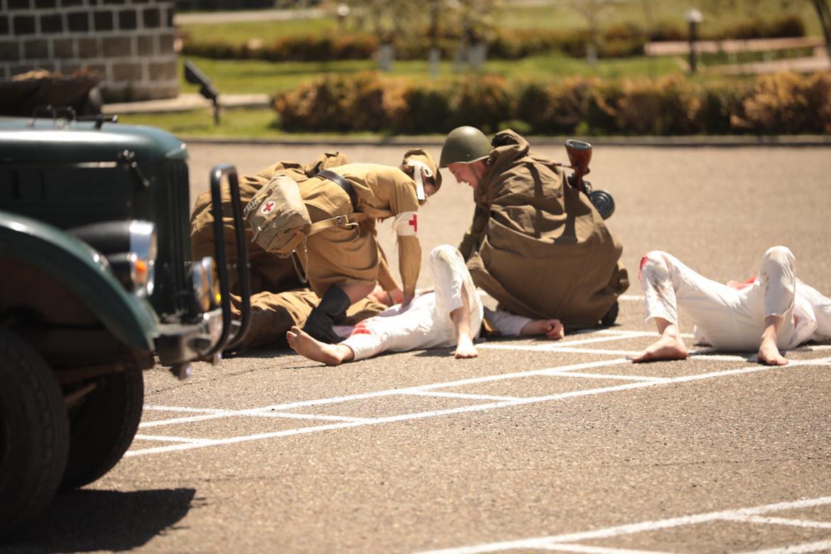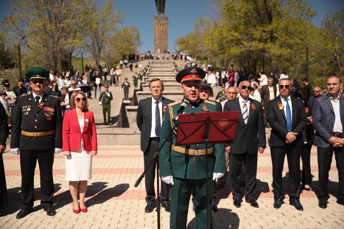 После возложения цветов к вечному огню у монумента «Мать Армения», на 102 военной базе состоялся праздничный парад. Гости российской базы наблюдали за исторической реконструкцией событий Великой Отечественной войны, а также выступлением спецподразделений ВС РФ.