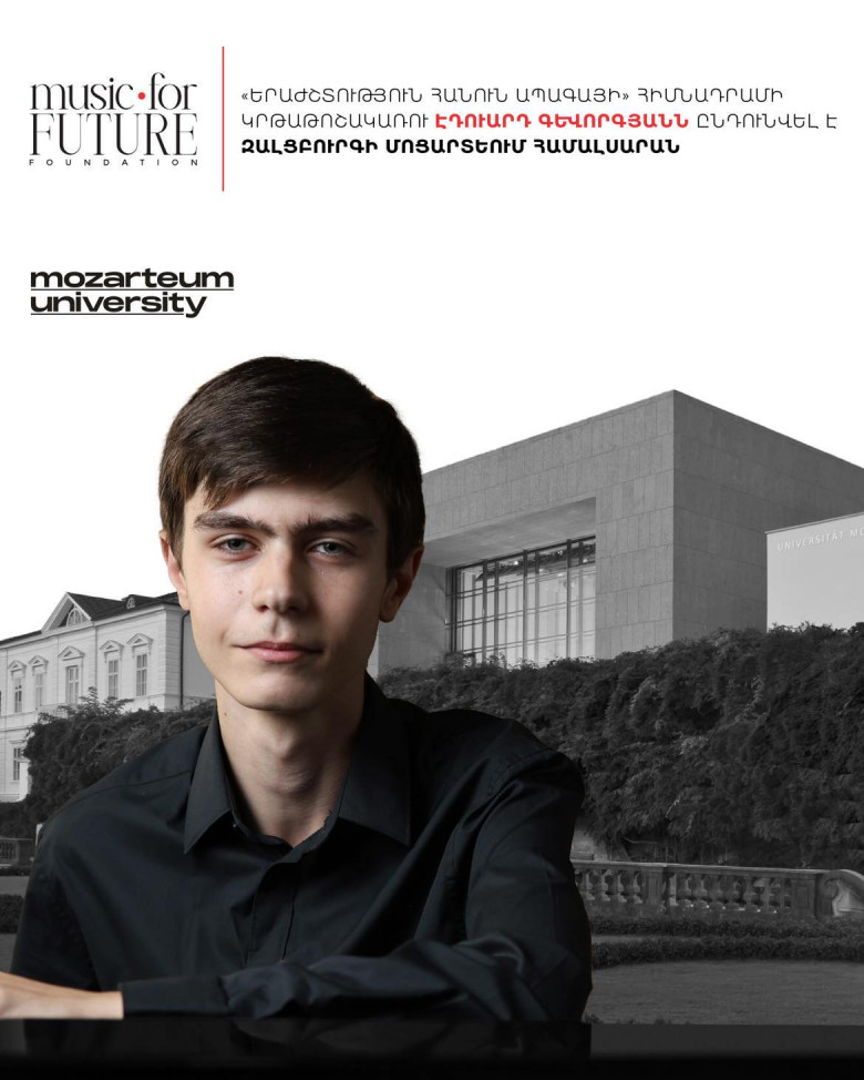 Успехи молодого пианиста обусловлены его талантом и трудолюбием, но, конечно, это также результат совместной работы с фондом «Музыка во имя будущего». Это важное достижение Эдуарда - поступление в престижный университет Моцартеум, свидетельствует о том, насколько важны большие усилия, которые фонд «Музыка во имя будущего» вкладывает в развитие способностей юных музыкантов. Успех любого стипендиата фонда мотивирует их делать больше для прокладывания пути талантливым детям Армении.