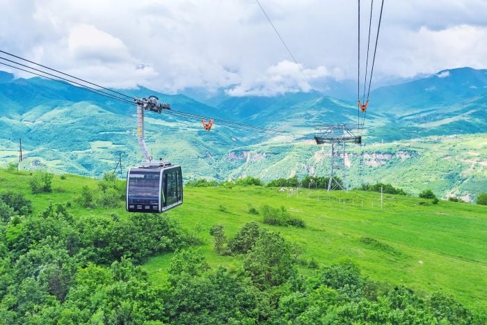 Чувство магии создаётся и самим масштабом: маленькие по площади церкви устремляются ввысь. Ты всё время смотришь вверх. А расположены они так, будто выросли из скал — словно их не строили, а посадили. Вот Нораванк XIII века, сверкающий красно-жёлтым в ущелье — словно родной брат окружающих скал. А вот Татев — более суровый, серый, почти североевропейский, стоящий на обрыве, куда тебя доставит самый длинный в мире канатный маршрут без остановок — впечатляющий, но немного страшный.