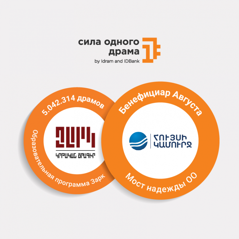 Сумма в 5 042 314 драмов была направлена в эко-лагерь Зарк. Бенефициаром инициативы «Сила одного драма» за август стала ОО Мост надежды