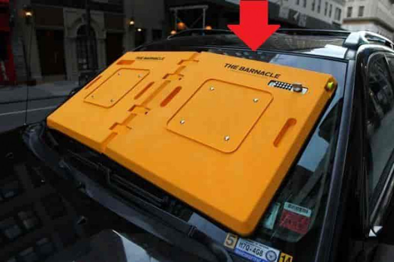 "The Barnacle" - прототип устройства от американской компании "Ideas That Stick", которое поможет бороться с любителями парковаться как и где попало. Оранжевая штуковина с сильными присосками крепится на лобовое стекло автомобиля нарушителя. Снять ее можно только с помощью кода из СМС, полученного после оплаты штрафа.