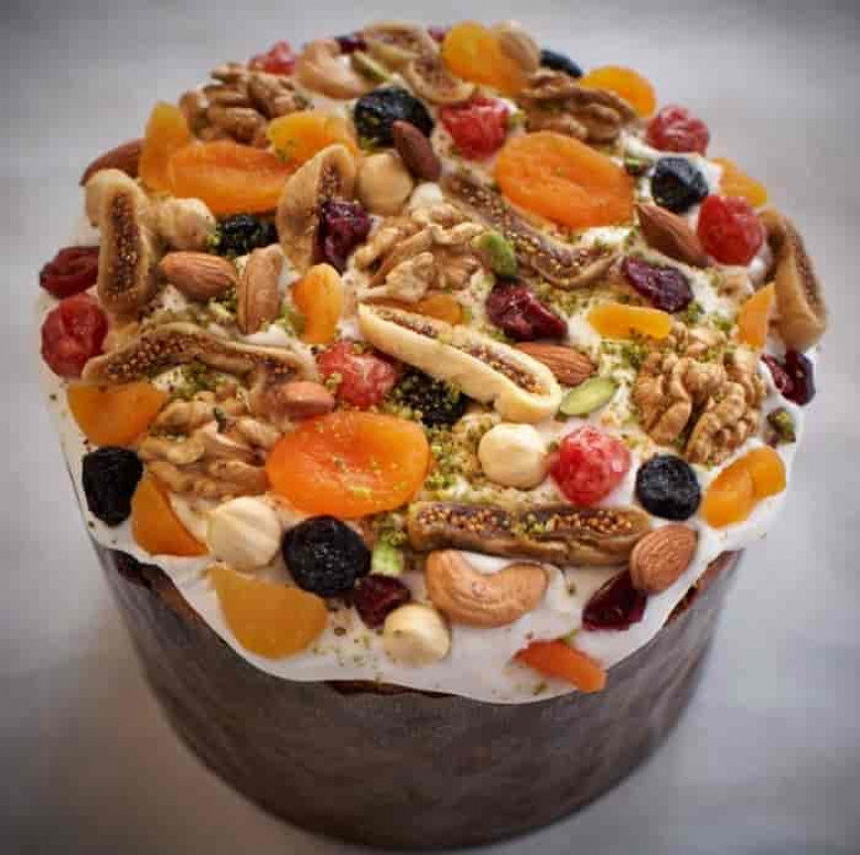 - Попробуй украсить пасхальный кулич ягодами и орехами. Выглядит просто изумительно!