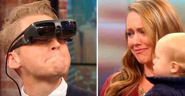 Ведущая программы затем объявила, что они дарят Джину очки стоимостью в 15 тысяч долларов, и теперь он каждый день может видеть жену и сына!